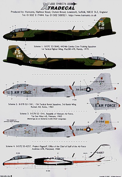 B-57 Canberra Pt 1 (4) B-57B 52-1541 13th TBS, 3rd BW Kunsan AFB Korea 1963; 52-1541 transferred to Republic of Viet Nam AF, Tan Son Nhut AB Vietnam 1965 both overall Natural Metal; B-57C 53-3840