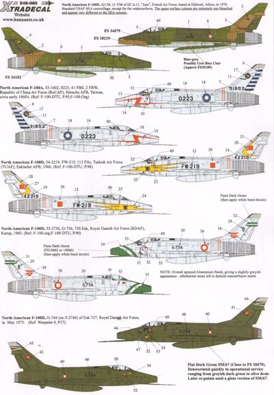 F-100D Super Sabre Pt 3 In Foreign Service (5) 53-1602/0223 41FBS,2FBW Republic of China AF Taiwan 1960; 54-2219 FW-219 113 Filo Turkish AF 1960; 55-2756 G-756 730 Esk R.Danish AF 1965;