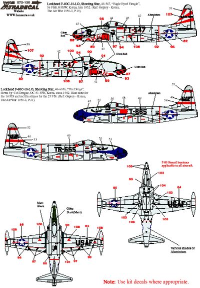 Lockheed T-33A/Lockheed P-80C Shooting Star Part 1 (7) T-33 52-9839 116FS Washington ANG, Geiger Field 1968; 57-0708 49FIS Griffiths AFB 1969; 52-5672 120th FIG Montana ANG, Great Falls 1987;