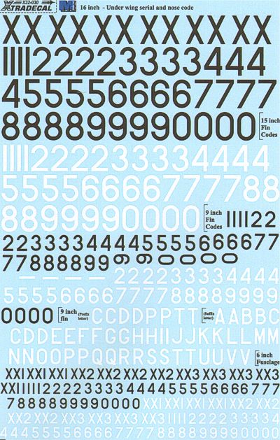 BAe Hawk 16' Black and 15' White underwing serials; 9' Black and White fin code letters and numbers, 6' fuselage Black and White serial letters and numbers. With this decal combined with the thre