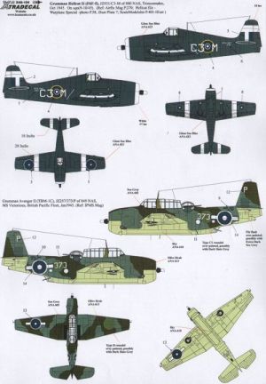 US Aircraft in the Fleet Air Arm (3)Grumman F6F-5 Hellcat Mk.II JZ931 C3-M 800 NAS Trincomalee 1945; Grumman TBM-1C Avenger Mk.II JZ257 373/P 849 NAS HMS Victorious British Pacific Fleet 1945; Vo