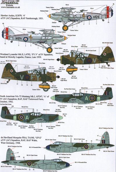 The History of 4 Squadron (11) Hawker Audax K3079/4 RAF Farnborough 1931; Westland Lysander Mk.II L4792 FY-V RAF Odiham 1939; North American Mustang Mk.I AP247/A RAF Twinwood Farm 1942; DH Mosqui