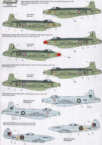 Supermarine Spiteful and Supermarine Attacker (7) Spiteful NN664 1st Prototype in overall High Speed Silver; RB515 first production Spitfire Mk.XIV converted to Spiteful, first flown 31-3-1945, c