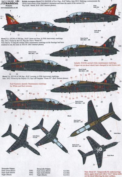 BAe Hawk T.1 and T.2 (2) T.1 XX246 or XX318 100 Sqn 95-Y 95th Anniversary 2012 RAF Leeming; T.2 ZK020/K 4 Sqn 100th Anniversary RAF Valley 2012