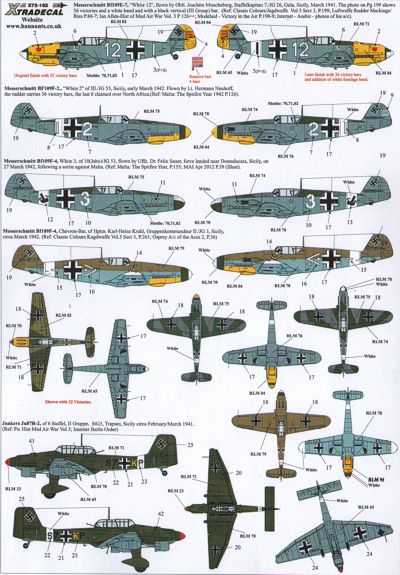 The Battle for Malta Axis (9) Messerschmitt Bf 109E-7 White 12 7/JG26 Oblt Joachim Muncheberg; Bf 109F-2 White 2 III/JG53 Lt Hermann Neuhoff; Bf 109F-4 White 3 10(Jabo)/JG53 Uffz Felix Sauer; Whi