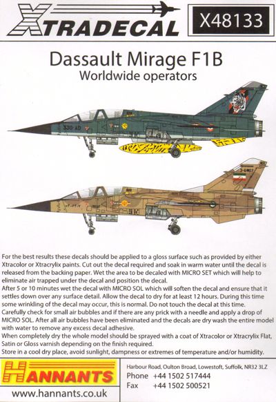 Mirage F.1B (11) France 330-AD/509 EC 5/330 NATO Tiger Meet 2001; 33-FH/517 EC 3/30 Reims-Champagne 2002; Spain CE.14-27/14-70 Esc142, Ala, NATO Tiger Meet, Italy 1988; Ecuador Escudron 2122, Gru