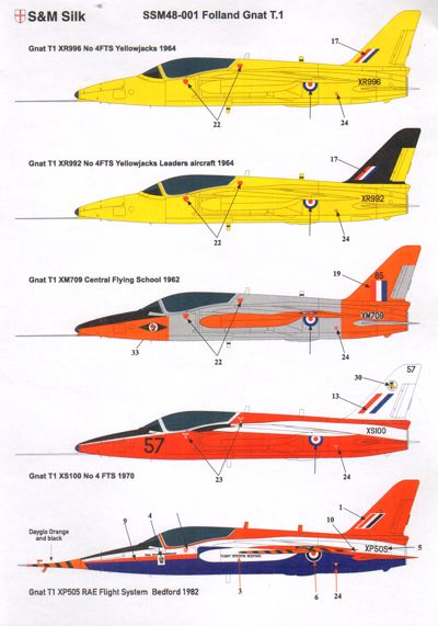 Folland Gnat. This is a generic sheet and allows almost any RAF Folland Gnats to be built