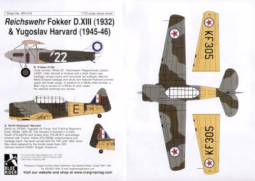 Harvard & Fokker D.XIII. Reichswehr Flying school USSR 1932; Harvard EF302/E Yugoslav Air Force 2nd Training Regt 1945
