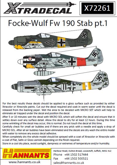 Fw-190 in Stab markings. (15) Fw-190A-2 Schlagter Stab/JG 26 France 1942 Fw-190A-3 I./JG51 Op Barbarossa. Fw-190A-4 II/JG 51 Oblt Hans Mohr Netherlands 1943; Fw-190A-5 JG 54 Kommodore Anton Madle