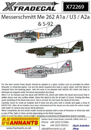 Messerschmitt Me-262A-1a / U3 / A2A / S-92 (12). 6th prototype, April - July 1944 VI+AL Red 6; A1a W.Nr170071 White 2 Ekdo 2 Maj Erich Hohagen Lechfeld 1944; W.Nr110956 White 17 Ekdo 2; W.Nr11161
