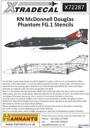 McDonnell-Douglas FG.1 Phantom Royal Navy stencil data Part 1. Note that small white serials are between the roundels and the black serials but are hard to see.