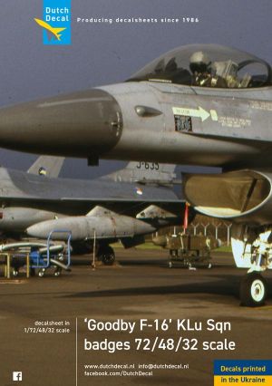 The First Years. Goodbye F-16, KLu Sqn badges 1/72, 1/48 and 1/32 Scale