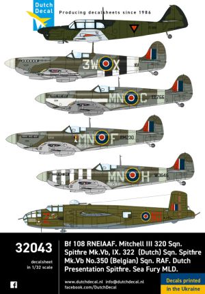 Bf.108 RNEIAAF, Mitchell III 320 sqn, Spitfire Mk.Vb, Mk.IX 322 squadron, Spitfire Mk.Vb Belgan Air Force 350 sqn, Dutch Presentation Spitfire en Sea Fury MLD